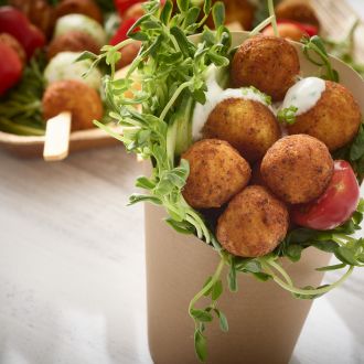 Crispy potato balls made from soft, finely seasoned potato purée with a savory coating.