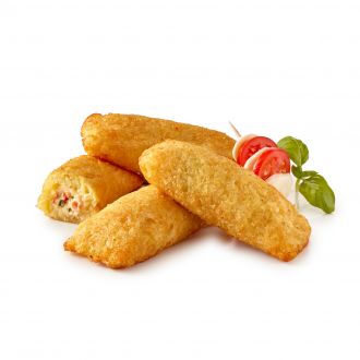 Made from shredded potatoes and an Italian filling of cream cheese, sour cream, Mozzarella and tomatoes. Pre-fried in high-quality rapeseed oil. 25 % filling in a crispy cover.