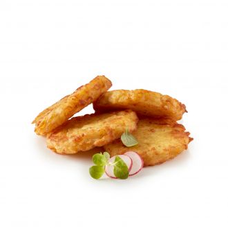 Rösti like home-made. Made from fresh coarsely shredded quality potatoes. Rusticly formed and pre-fried in unhydrigenated, 100 % vegetable fat.